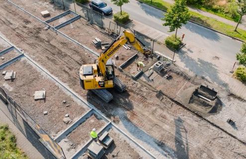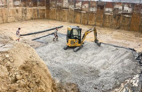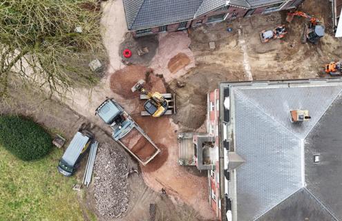 Grondwerken, kelders uitgraven, keerwanden plaatsen