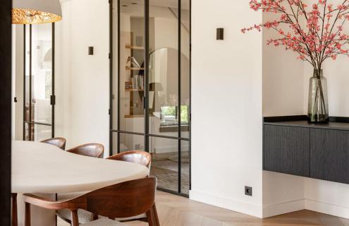 Totaalrenovatie van een Vlaamse gezinswoning in Rijkevorsel, met respect voor authentieke elementen en een serene, hedendaagse inrichting met focus op comfort en tijdloosheid.