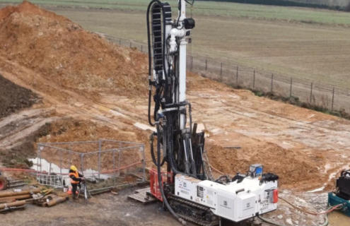 Réalisation de 35 forages géothermiques verticaux de 140 mètres et installation des conduites du réseau de chaleur.