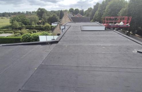 Klant zat met lekken in het roofingdak en vroeg om alles te vervangen waar nodig. De garage werd vrij gemaakt en alle onderliggende platen werden vervangen. Daarna werd een nieuwe EPDM aangebracht.