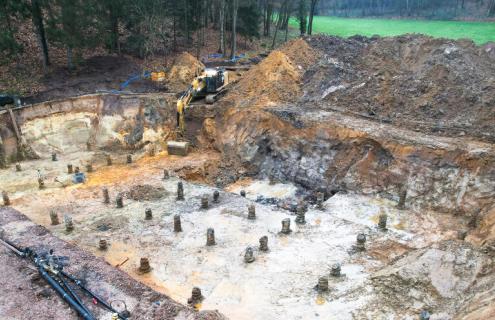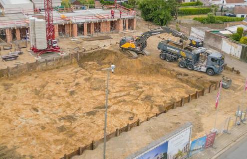 Grondwerken, kelders uitgraven, keerwanden plaatsen