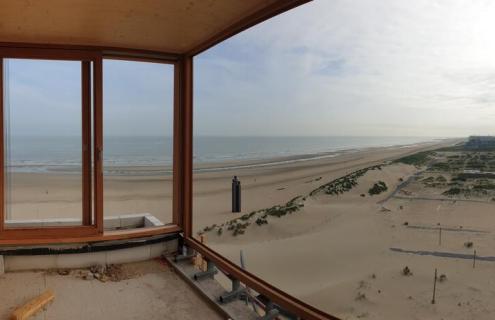 Pose de double et triple vitrage en rénovation ou pour de nouvelles constructions. L'un de nos chantiers les plus aérien a été réalisé au 9ème et 10ème étage d'un nouveau bâtiment à La Panne