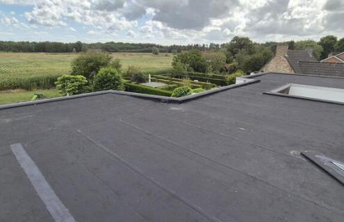 Klant zat met lekken in het roofingdak en vroeg om alles te vervangen waar nodig. De garage werd vrij gemaakt en alle onderliggende platen werden vervangen. Daarna werd een nieuwe EPDM aangebracht.